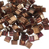 Diese besondere Kollektion von Glasmosaiksteinen zeichnet sich durch kupferfarbene Akzente aus, die einen atemberaubenden Effekt erzielen. Aventurin, ein schimmernder Quarz, wird während des Herstellungsprozesses hinzugefügt und verleiht den Mosaiksteinen ein einzigartiges Aussehen, das an Halbedelsteine erinnert. Die Transparenz der Mosaiksteine variiert je nach Farbe, und auf jeder Platte sind subtile Unterschiede zu erkennen. Diese vielseitigen Mosaiksteine sind für den Innen- und Außenbereich geeignet. Ob Sie eine Mosaikwand gestalten oder ein einzigartiges Kunstwerk schaffen wollen, die Möglichkeiten sind endlos. Lassen Sie sich von den funkelnden Kupferreflexen und dem lebendigen Aussehen dieser Glasmosaiksteine inspirieren und verleihen Sie Ihren Projekten einen Hauch von Luxus und natürlicher Schönheit.     Treten Sie ein in die bezaubernde Welt der quadratischen Glasmosaiksteine, in der Kunst und Handwerk in einem harmonischen Spiel von Farbe und Textur zusammenkommen. Entdecken Sie eine große Vielfalt an Größen, von 4,8x4,8 mm bis 15x15 mm. Jeder Mosaikstein ist ein Meisterwerk für sich, eine Miniaturleinwand, die darauf wartet, Ihre kreative Vision zum Leben zu erwecken. Lassen Sie Ihrer Fantasie freien Lauf, während Sie sich in den feinsten Details Ihrer Mosaikkreationen verlieren. Die Vielseitigkeit dieser Mosaiksteine gibt Ihnen die Freiheit, Subtilität und Komplexität zu kombinieren und Ihren Kunstwerken einen einzigartigen und unvergesslichen Look zu verleihen.